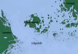 Lågskär (Swedish for "low skerry") is a small island within the Åland archipelago of Finland. It belongs to the municipality of Lemland. It is situated about 24 kilometres (15 mi) south of Mariehamn in the Baltic's Sea of Åland. The main island of Lågskär measures 61 hectares (150 acres) in area. Rock stacks, sea cliffs and rocky shores are found along the coastline of the island. As a breeding ground for waterfowl, Lågskär has the status of an Important Bird Area (IBA) and is frequented by ornithologists who use the Lågskär Lighthouse buildings during their stay. In the past, several vessels have sunk off the coast.