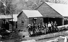 After being informed of quality timber in the region, David Lahey commenced construction of a sawmill at Canungra on 2 October 1884.[2][3] During the same year David, John, Isaiah, Thomas and Evangeline Lahey all applied for and were granted selections of land around Canungra totalling over 3,000 acres (1,200 ha). Lahey's Canungra Sawmill was established on Portion 61, Canungra on land leased from Robert Christie and beside what is now known as Christie Street.[4] With the construction of the mill, David Lahey also had a number of small cottages built on site for mill workers while others were established in and around what would become the township of Canungra.[1]