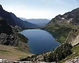 ![]() Lake Ellen Wilson from Gunsight Pass | |