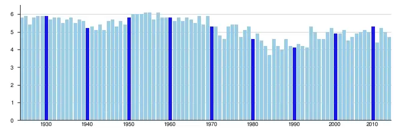 Annual maximum height (in meters) of the Niger River at the Diré hydrological station[21]