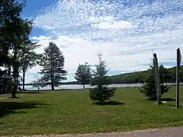 Lake Lucerne is located near Crandon in Forest County, Wisconsin, United States.[2] There is a boat landing on the southeast shore of the lake and a restaurant (Waters Edge) on the west shore. This restaurant performs a water ski show during the summer months. Summer homes and cottages surround the lake. There is a large, uninterrupted stretch of water on the north half of the lake. On the southern half, there is a large cluster of islands, the largest having a sand bar that is popular with swimmers. The southern tip of the lake is dotted with bays and water meadows.[3]