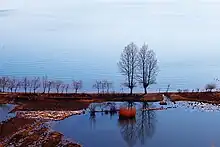 The Gaizu River, flowing out of the lake at its southeast end, has a controlled outlet that is only operated during the rainy season and remains closed from September to May. Lugu Lake is snowbound for three months a year; in the autumn and spring, it has a cool and dry climate with warm daytime temperatures.[4][5][6]