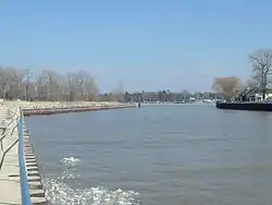 The channel connecting Lake Macatawa to Lake Michigan, facing Lake Macatawa.