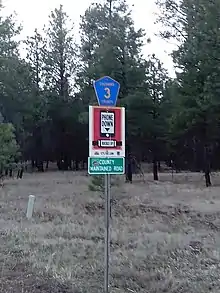 Lake Mary Road, sometimes referred to as Forest Highway 3, is known for its recreational opportunities, as it runs through pine forest areas and past three northern Arizona lakes.[2] It is also renowned for its gently rolling hills and wide roadway shoulders, making bicycling along the road attractive.[3] The road has also become a destination for recreational runners, because the road has wide shoulders and easy access to trailheads and parking spots.[4] The road maintains a minimum elevation of approximately 6,730 feet (2,050 m) above sea level for its entire length, while its peak elevation is over 7,500 feet (2,300 m) above sea level.[5]