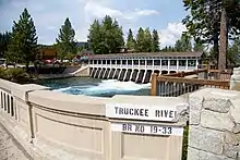 Tahoe Dam regulates the top six feet of Lake Tahoe, and distributes the water into Tahoe's primary outflow, the Truckee River.[1] The dam is located in Tahoe City and serves as the main storage facility for the U.S. Bureau of Reclamation's Newlands Project that also includes the Lahontan Dam and two diversion dams, providing irrigation water for 55,000 acres (22,000 ha) of cropland mainly in the Lahontan Valley of western Nevada.[2] The present Lake Tahoe dam replaced an older, privately owned dam built in 1870 at roughly the same location.[3]
