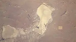 When waters reached an elevation of 710 metres (2,330 ft), the maximum depth of the lake would have been about 70 metres (230 ft) based on borehole data.[11] It is possible that Lake Thompson overflowed northwards, into the Fremont Valley;.[1] presently the sill that water would have to flow over is too high for spilling of a 710 metres (2,330 ft) lake to occur, but later sedimentation may have raised the sill. An overflow eastward close to Boron, California towards the Mojave River and/or Lake Harper is also possible but less likely.[11][12]