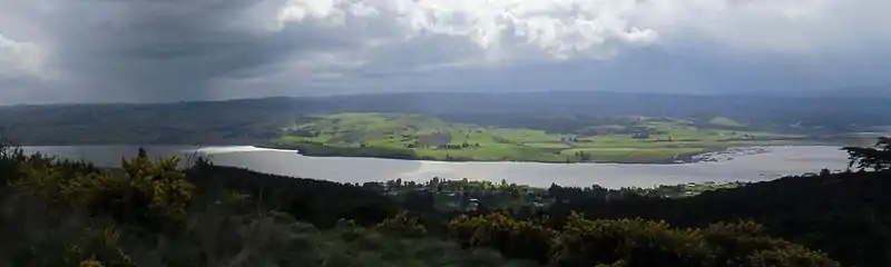 Lake Waihola is a 640 ha tidal freshwater lake located 15 km north of Milton in Otago, in New Zealand's South Island. Its area is some 9 square kilometres, with a maximum length of 6 kilometres and a mean depth of 0.75m.[1]