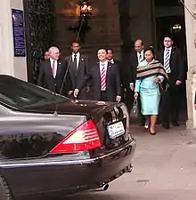 In April 2013, Lalao Ravalomanana put herself forward to run in the 2013 presidential election, an election in which her husband was barred from standing.[3][4][5] However, Ravalomanana, who had recently returned from exile in South Africa where she lived with her husband, was barred from running for not having lived in Madagascar for 6 months before the poll.[6] Ravalomanana then publicly endorsed medical doctor and politician Jean Louis Robinson from Antananarivo.[7]