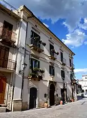 - Ducal Palace, located in Piazza Umberto I. The palace was built at the behest of the Di Capua dukes in Cinquecento. In 1756 the palace was property of the D'Aquino family of Caramanico. Little remains of the original structure except some cantonal stone and a few windows. The building has three levels. The cantonal consists of a pilaster which is surmounted by a circular element supported by shelves. The window placed on a cantonal has a stone exhibition with piers with floral motifs placed on a window sill supported by shelves. The frame on which the entablature ends is supported by several shelves with an acanthus leaf decoration. The facade has a scarp profile.[6]