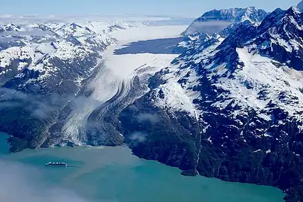Lamplugh Glacier is an 8-mile-long (13 km) glacier located in Glacier Bay National Park and Preserve in the U.S. state of Alaska. It leads north to its 1961 terminus in Johns Hopkins Inlet, 1.4 miles (2.3 km) west of Ptarmigan Creek and 76 miles (122 km) northwest of Hoonah. The glacier was named by Lawrence Martin of the U.S. Geological Survey around 1912 for English geologist George William Lamplugh (1859–1926), who visited Glacier Bay in 1884.[1][2]