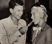 One of the earliest popular culture references to Turner is in Frank Sinatra's 1944 recorded version of "Nancy (with the Laughing Face)."[16] During this time, Turner and Sinatra had been carrying on a romantic affair.[17] She would later be named in Nina Simone's 1958 version of the song "My Baby Just Cares for Me," which appeared on her album Little Girl Blue.[18]