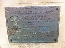Plaque to Lancel Victor de Hamel on Albany Town Hall