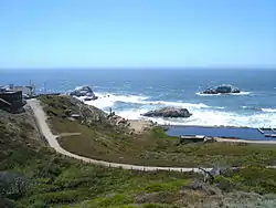 Along the Coastal Trail at Eagle's Point, local artist Eduardo Aguilera constructed a "hidden labyrinth" overlooking Golden Gate Bridge in 2004.[6] It has been vandalized numerous times and was destroyed in August 2015, but was rebuilt a month later by the artist with the help of 50 volunteers.[7][8]