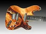 The Langcaster Guitar[4] is distinctive for its unique prehistoric swamp kauri body and intricate patterns made from the roots of the native New Zealand Kauri tree. Carbon dating carried out by the scientists at the University of Waikato in New Zealand and the University of Groningen in the Netherlands has found wood used in the guitar bodies to be more than 35,000 years old.[5] Notable players of Langcaster Guitars include Jan Akkerman,[6] Kara Gordon,[7] and Arli Liberman.