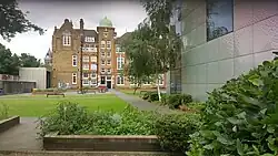 The school took its current name in 1965 after Charles Langdon, who was vicar at the Church of St Michael and All Angels, Bromley-by-Bow before the Second World War.[2] The older part of the school was built in 1907. The school has previously been named Byron Street School and Hay Currie School, the latter after politician and educationalist Edmund Hay Currie.[3]