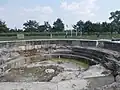 The remains of the artillery platform of the former German cannon "Long Max" in Koekelare, Belgium.