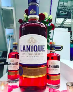 Lanique is a strong 39% spirit liqueur made with Attar of Rose that is created by steam distilling thousands of rose petals. Lanique is often used in classic cocktails to add a rose flavour to them or due to its high alcohol strength as a drink in its own right with tonic or lemonade. It is now produced in the UK and owned by a Jersey based company.