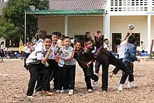 Lao Loum households average between six and eight persons, but may reach twelve or so in exceptional cases. The family structure is typically nuclear or stem: a married couple and their unmarried children, or an older married couple together with one married child and his or her spouse plus unmarried children and grandchildren. Because kinship is reckoned bilaterally and flexibly, Lao Loum may maintain close social relationships with kin who are only distantly related by blood. Terms of address for persons in an older generation distinguish whether the relationship is through the father's or mother's side and elder from younger siblings.[2]