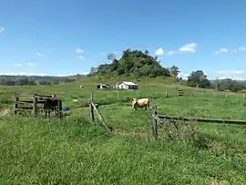 Round Mountain is in the north of the locality (28°04′23″S 152°55′21″E / 28.0730°S 152.9225°E / -28.0730; 152.9225 (Round Mountain)) rising to 109 metres (358 ft).[4][5]