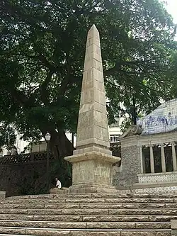 The Piques Obelisk, also known as Memória Obelisk, named after the place where it stands, is a monument about five meters high, in Largo da Memória, built in 1814. Originally, this pyramidal landmark demarcated the existence of a fountain built in the same year in the square, the Piques Fountain, so in old references, it also appears as Piques Pyramid, erected by Vicente Gomes Pereira, aka Vicentinho, a Portuguese master builder. People, seeing that this obelisk resembled a spearhead piercing the space, would have started calling it "pique" instead of "obelisk" or "pyramid."[4]