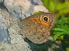 Lasiommata maera, the large wall brown, is a butterfly in the family Nymphalidae.