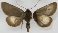 The wingspan is 30–32 mm for males and 33 mm for females. Adults are on wing from late June and early July.