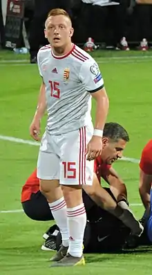 László Kleinheisler (Hungarian: [ˈlaːsloː ˈklɛinhɛiʃlɛr];[2] born 8 April 1994)[3] is a Hungarian professional footballer who plays as a midfielder for Croatian club Hajduk Split, on loan from Greek side Panathinaikos.
