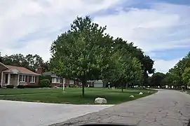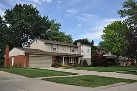 The Lathrup Village Historic District is a residential district, with streets laid out in a geometric and curvilinear street pattern that produces octagonal, circular and semi-circular focal groupings, and a series of small triangular parks scattered throughout the district. The district covers most of Lathrup Village, and includes 1156 buildings, of which 994 contribute to the historic character of the district.[2]