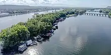 In 1998 Latsch island was officially made a part of the city of Winona. The number of houseboats on the island was strictly limited to 101, and a rule was put in place that houseboats could not be repaired beyond 50% of their original value.[3][2][5] The intention of this law was to gradually displace the houseboats on the island, however, the law against the repairing of the houseboats is routinely ignored.[2][3] Residents pay an annual mooring fee to the city in exchange for their right to dock on the island. As of 2021, this fee was $350 per annum.[5]