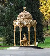 The history of City Park started with the allocation of an allotment for the Government Cottage in 1807 at the base of Windmill Hill. In the 1820s, the Launceston Horticultural Society acquired the neighbouring allotment to the immediate west of the government gardens for use as a botanical garden.[2] In 1863, the Launceston Horticultural Society handed the gardens over to the Launceston City Council along with the government gardens to create what was named 'Peoples Park'. Over time, the Government Cottage ended up as rental accommodation and fell into disrepair until it to was handed over to the council in 1885 and demolished.[3]