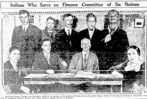 Kellogg traveled throughout the Six Nations to raise funds to litigate claims to Iroquois lands, and her followers became known as the "Kellogg Party" throughout the U.S. and Canada.[76] They collected money from Iroquois in New York, Oklahoma, Wisconsin, Ontario and Quebec, stating it would be used to claim up to eighteen million acres of land in New York and Pennsylvania.[76] Collections were also received from the Stockbridge Indians, the Brothertowns and a number of white business people in the Green Bay area.[77] These monies were not used for the purported purpose, nor were they returned to contributors, and many Indians filed protests with the federal government and with tribal elders.[76]