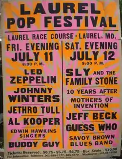 The Laurel Pop Festival was a music festival held at the Laurel Race Course in Laurel, Maryland on July 11–12, 1969.