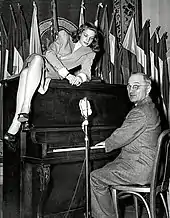 - ↑ "Lauren Bacall sits atop a piano while Vice President Harry S. Truman plays at the National Press Club Canteen". Harry S. Truman Presidential Library and Museum. February 10, 1945. Archived from the original on September 26, 2018. Retrieved January 2, 2015.