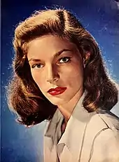 During her screen tests for To Have and Have Not (1944), Bacall was so nervous that, to minimize her quivering, she pressed her chin against her chest, faced the camera and tilted her eyes upward.[28] This effect, which came to be known as "The Look", became another Bacall trademark, along with her sultry voice.[29]