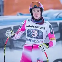 Born in Edmonton, Alberta in Canada, Ross was on skis at age two at the Snow Valley ski hill, as her father was a former alpine racer. The family moved to Klamath Falls, Oregon, when she was age 7 and Ross skied and raced at Mount Bachelor near Bend.[1] She was selected to the U.S. Ski Team in 2006,[2] and made her World Cup debut in December 2009. Ross was moved up to the World Cup team for the 2011 season and represented the U.S. at the 2011 World Championships, where she finished tenth in the women's downhill.[3] Ross attained her first World Cup podium in March 2013, placing second in a downhill at Garmisch-Partenkirchen, Germany.[4][5]