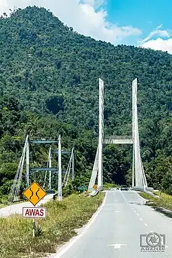 The Lawas Bridge or Batang Lawas Bridge is a bridge near Lawas town in Limbang Division, Sarawak, Malaysia. Located at the Lawas-Merapok-Sindumin Highway FT1, the bridge was originally the only suspension bridge in Sarawak that was designed for motor vehicles.[1] The old suspension bridge was ultimately replaced by a single-tower cable-stayed bridge in 2014.[2]