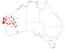 It is found in Beard's Eremaean Province and in the IBRA regions of Carnarvon, Gascoyne, Little Sandy Desert, Murchison, Pilbara and Yalgoo.[1]