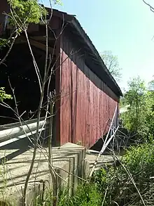 LeBoeuf Creek originates in Summit Township and meanders south before crossing under U.S. Route 19. Its East Branch tributary originates in Greene Township and flows south until meets with the main branch in Waterford Township.[4] In Waterford, it passes under the Waterford Covered Bridge and heads west, back under US 19 and flows into Lake LeBoeuf. Lake LeBoeuf empties into LeBoeuf Creek at its southern end. The creek crosses under US 19 again and continues south where empties into French Creek near Mill Village.