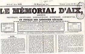 Le Mémorial d'Aix was a bi-weekly French-language newspaper in Aix-en-Provence from 1837 to 1944.