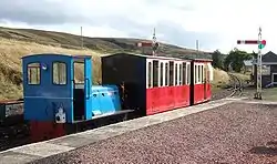 The preserved section runs from Leadhills for about 1 kilometre (0.6 mi) towards Wanlockhead and is the highest adhesion railway in the UK. The rack and pinion Snowdon Mountain Railway is higher. Trains are currently diesel worked with the locomotive propelling the train up hill away from Leadhills.