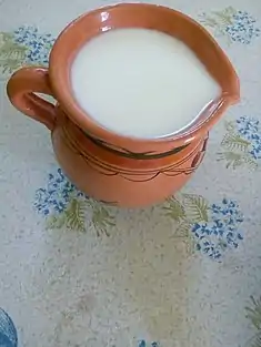 The term Leben, variously laban, liben, lben // ⓘ (Arabic: لبن) in the Middle East and North Africa,[1] refers to a food or beverage of fermented milk. Generally, there are two main products known as leben: in the Levant region and parts of Arabia and North Africa (Maghreb), buttermilk. Leben can be served at breakfast, lunch or dinner. [2]