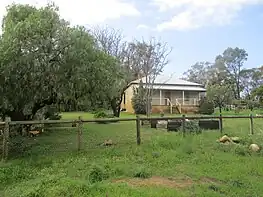 The region was of primarily agricultural use until 1953.[3] Retained historical land sites include Mead Farm, formerly owned by Henry Mead, and Sloan's Cottage, purchased by George Sloan and his spouse Emma Eliza Sloan née Smirk in 1889.[14] Mead Farm was purchased by Henry Mead in 1854 and used for crops and livestock until 1984.[15] Sloan's property was located between the Thomas Peel Estate and the Western Australian coast.[14] After the cottage was built in 1911, the property was cultivated and utilized for growing commercial crops, mainly potatoes and cabbages to provide produce sold to the Fremantle Markets.[14] Sloan's property and farm remained an agricultural community until 1953 to 1954, which was when the 40 acres of land were given to Kwinana council for the construction of a residential suburb.[14] After agricultural activity ceased, from 1961 to 1969 the cottage was occupied by several landowners.[14] During the development of the Leda town facilities and houses, it became disused, vandalised and listed for demolition.[14] From 1973 to 1978, the building was rebuilt through a government grant for historical preservation as was suggested by Wally Procter, deputy Mayor of Kwinana in 1975.[14] The cottage received heritage listing by the government of Western Australia in 1992.[14] The area, then known as Cockburn Location 279, is now encompassed by the east part of the Leda Nature Reserve as of 1992.[3] In 1994, Sloan's property and the surrounding land became classified as having high biodiversity value and repurposed for conservation.[3] From 1992, the surrounding gardens were used for Permaculture, with an aim to improve soil quality and foster the growth of native flora.[14]