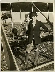 Around 1913, Richberg-Hornsby became interested in flying.[6] She began her studies with Max Lillie while living with her parents in Chicago.[10][11] Following Lillie's death in September 1913, she enrolled in the Wright Flying School in Dayton, where she studied both flying and airplane construction.[12][11] In March 1914, she became the school's first female graduate.[13] That June, she passed her licensing test under the supervision of Orville Wright (who described her performance as "The prettiest flying I ever saw a beginner do")[14] and on June 24 she received license No. 301 from the Aero Club of America.[13]