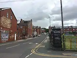 The park, consisting of 20 acres (0.081 km2) of Clapham's land between Queens Road and Hyde Park Road, was purchased jointly by a group of his mortgagees – William Ingham, an upholsterer, Thomas Hattersley, a spindle maker, and Richard Robinson, a linen merchant, all of Leeds. After a year, Hattersley bought the other two out for £3,333 in 1875. In the same year, he sold off the top 10 acres to the newly established Leeds Horticultural Gardens Company for £13,000 to continue in use as a park, and commissioned the Leeds architect Thomas Ambler to lay out the lower half of the estate for housing.[10] The plan showed a network of streets to receive small terraces mainly parallel to Queens Road, which had not yet been sewered or paved, and a number of plots to receive a better class of houses facing Brudenell Road – the original name of Clapham Road was dropped about this time as the Victorians appeared not to like streets named after businessmen who were failures.[15]