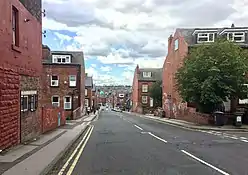 In a similar way to the Zoological Gardens, the existence of the Leeds Royal Park created an obstacle to building development in the sense that building took place around it and later it formed a specific estate in its own right. By the time it was finally sold for building purposes it was surrounded on three sides by newly built terraced houses. The only surviving building connected with either the Royal Park or the Horticultural Gardens is the old entrance lodge, now converted again into a group of houses and shops; the outline of the original entrance archway can still be seen on the side facing Woodhouse Moor.[17]
