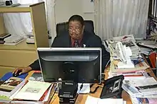He engaged with the national and global Press, public affairs, departments of Commerce, and Tourism to rebrand Sierra Leone's globally tarnished image after the end of the Sierra Leone Civil War.[16] His mandate was a new All People's Congress government initiative that was designed to change the international perception and image of not only the people of Sierra Leone but Sierra Leone itself which at the time was best known for civil war, genocide and conflict diamonds. He also facilitated President Koroma's other initiatives, such as "Uniting the Diaspora," "the Open Government principle," and "Attitudinal Changes programs."[2][5][14]