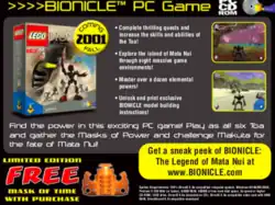 This advertisement for The Legend of Mata Nui was included in the July 2001 Bionicle comic Deep Into Darkness.