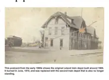 - ↑ "The town of Leland was being considered for a vote to be the new terminus for the railroad company". The Weekly Democrat-Times. September 16, 1882. p. 2. Retrieved October 31, 2021.