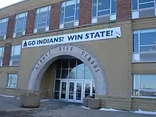 In February 2005, a school and community vote narrowly favored the name Titans over the Engines, a near homophone of the outgoing mascot name.[18] However, the Titans name was never officially adopted. Local elections later in 2005 brought in new school board members who fulfilled their promise to restore the school's original Indians mascot name. The school went without a nickname for the 2005-2006 school year, allowing time for a transition of logos and uniforms. Lemont officially returned to the Indians name beginning with the 2006-2007 school year.[16] The school board voted unanimously in July 2021 to phase out the Indians mascot.[7]