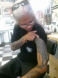 During the 1970s he began to explore his interest in Bornean traditional tattooing.[4] In 1976 he met tattoo artist Don Ed Hardy, who encouraged him to become a tattooist.[1][5] Zulueta started tattooing professionally in 1981.[1]